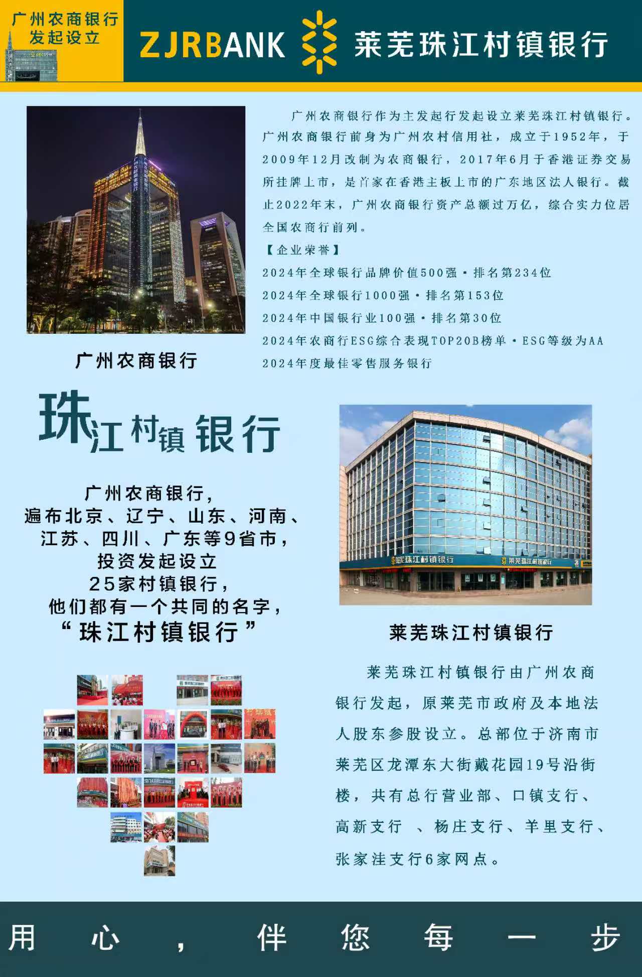 经国家金融监督管理总局莱芜监管分局批准,莱芜珠江村镇银行股份有限公司牛泉支行于2025年10月15日终止对外营业。